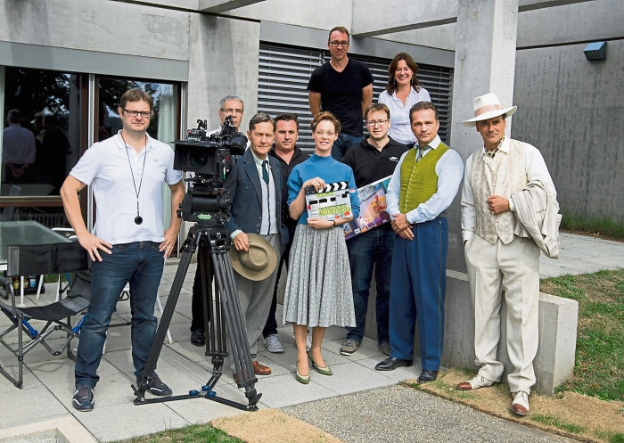Kameramann Willy Dettmeyer, Kurator a. D. Dr. Werner Esser, Udo Schenk, Robert Gehring von der MFG Filmförderung, Mona Petri, Regisseur Michael Rösel, Produzent Frieder Scheiffele, SWR Redakteurtin Stefanie Groß, Matthias Herrmann und Marcus Grüsser.