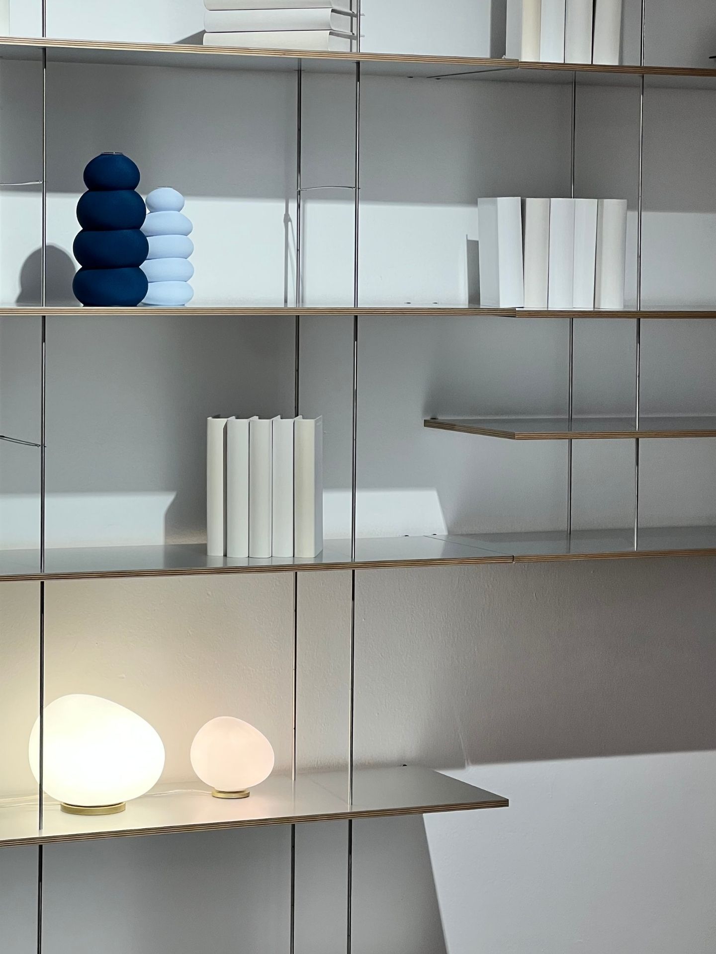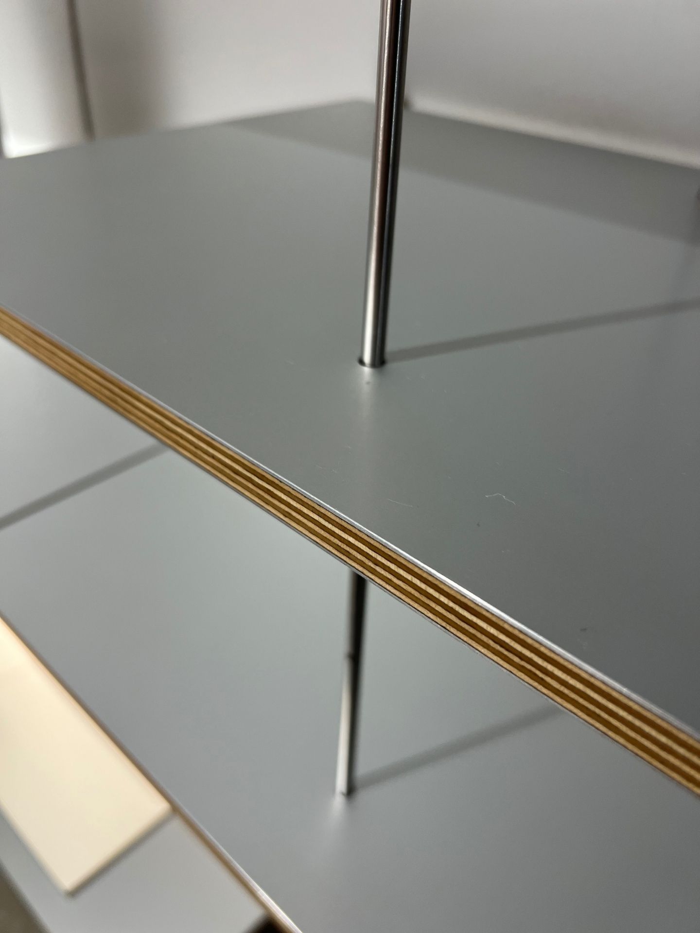 Ausführung: Böden & Stützplatte Aluminium eloxiert mit Multiplexkante